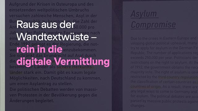Das Konzept Wandtext kann weiterentwickelt werden. Digitale Technologien können dieInformationsdichte entzerren, individuelle Zugänge ermöglichen und komplexe Inhalte verständlicher machen