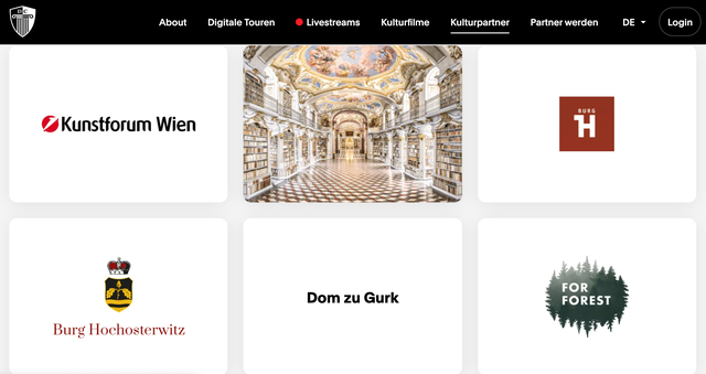 Die dritte Option, um eine Ausstellung oder Räumlichkeit digital zu präsentieren, passiert in Form einer sogenannten „digitalen Tour“. Hierbei können Besucher:innen sich selbstbestimmt durch eine 3-D-Abbildung des Kulturraumes bewegen. So können nicht nur die Ausstellungsstücke betrachtet werden, sondern auch besondere Orte gezeigt werden, die dem Besucher:innen vor Ort nicht zugänglich gemacht sind. So können auf Discover Culture zum Beispiel die Bunkeranlagen der Villa Trapp in Salzburg oder der Geheimgang der Klosterbibliothek Admont erkundet werden. Zusätzlich zur freien Bewegung im Ausstellungsraum erlauben digitale Touren es, Besucher:innen Zusatzinformationen in der Form von Videos, Audioguides, Texten oder auch digitalisierten Büchern zur Verfügung zu stellen.