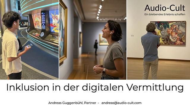 Wir leben für die Kulturvermittlung. Sehr gerne teilen wir Erfahrungen in Zusammenarbeit mit Seh- und Gerhölosenverbänden und Wissen zu technischen Lösungen. Unverbindlich. Melden Sie sich für eine Video-Kaffee an simon@audio-cult.com.